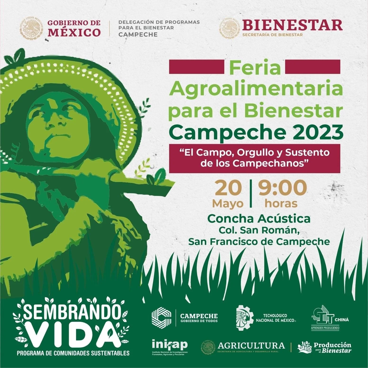 La Secretaría de Bienestar anunció para este sábado 20 de mayo, la Feria Agroalimentaria para el Bienestar 2023 en la Concha Acústica de Campeche, donde 400 beneficiarios del programa Sembrando Vida, ofertarán diversos productos de los programas de cultivos y maderables, así como apícolas, a precios públicos para no afectar a comerciantes establecidos.