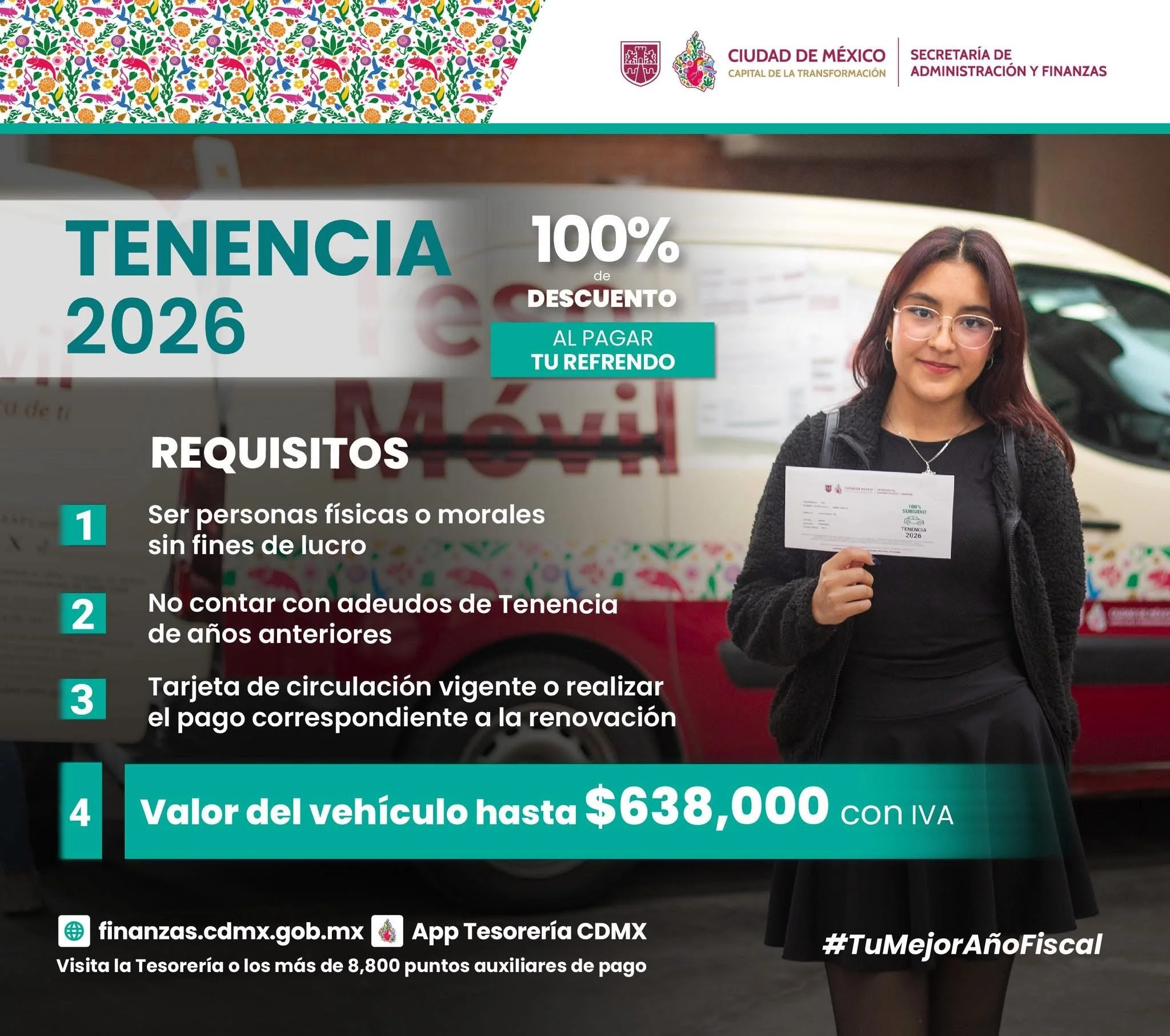 El Gobierno de la CDMX otorgará un subsidio del 100 por ciento en el impuesto sobre la tenencia de este 2026 para los contribuyentes que cumplen los requisitos de la Secretaría de Administración y Finanzas de Ciudad de México.