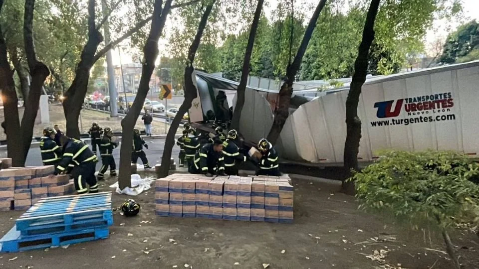 Tráiler desata caos vehicular tras atorarse en Viaducto Río de la Piedad