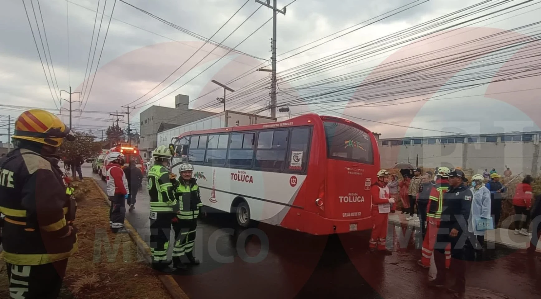 Accidente entre un autobús de pasajeros y un trailer deja varios lesionados en zona industrial de Toluca