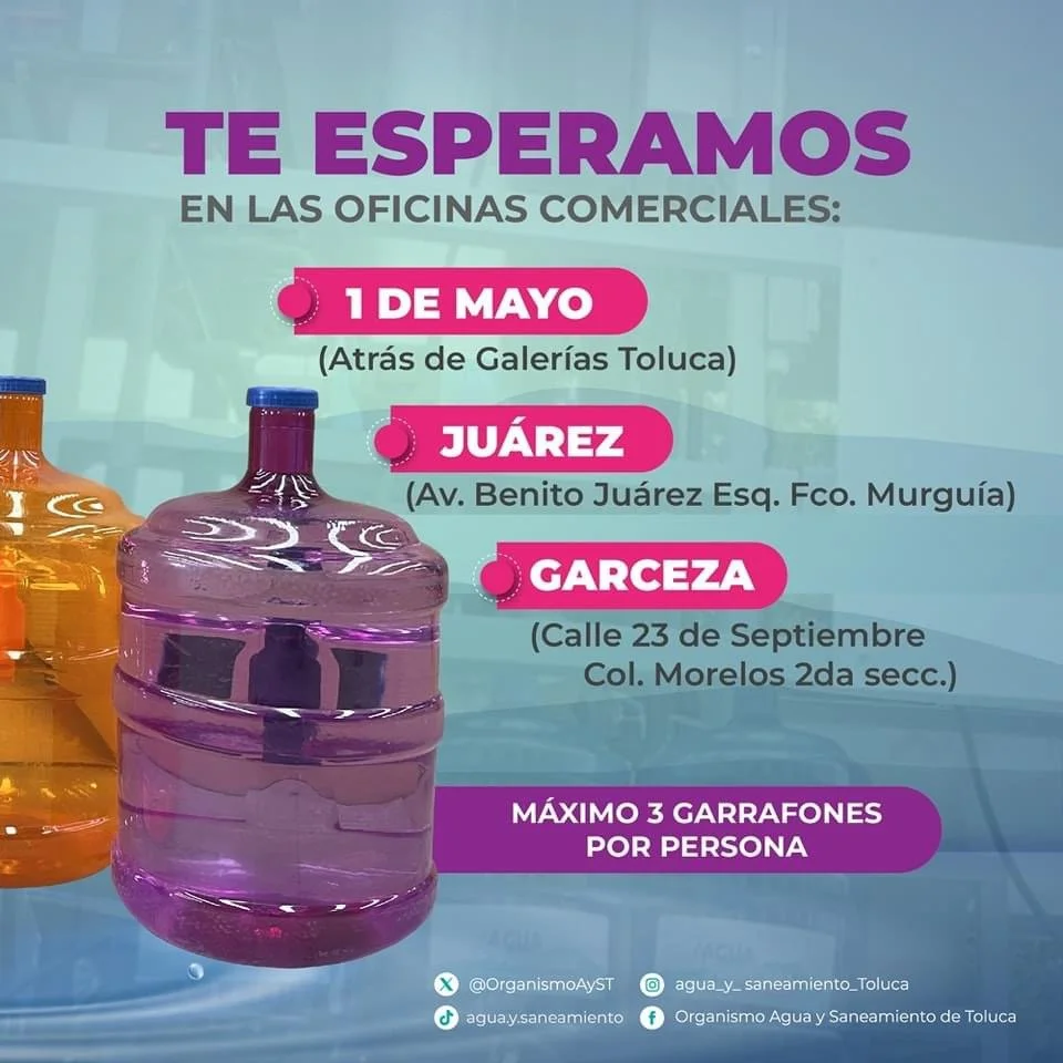 A fin de garantizar el acceso al agua potable ante la escasez en el Sistema Cutzamala, el Organismo Agua y Saneamiento de Toluca (OAyST) en conjunto con el gobierno del estado, ha implementado un nuevo programa de llenado gratuito de garrafones.