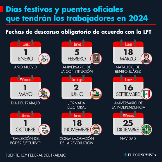 De acuerdo con la Ley Federal del Trabajo, este próximo 5 de febrero está catalogado como día de descanso obligatorio debido a que, en esta fecha en conmemoración del aniversario de la promulgación de la Constitución de 1917 y aunque en esta ocasión dicha fecha coincidió en que será lunes, cuando no ocurre, dicho día feriado se recorre al primer lunes de febrero.