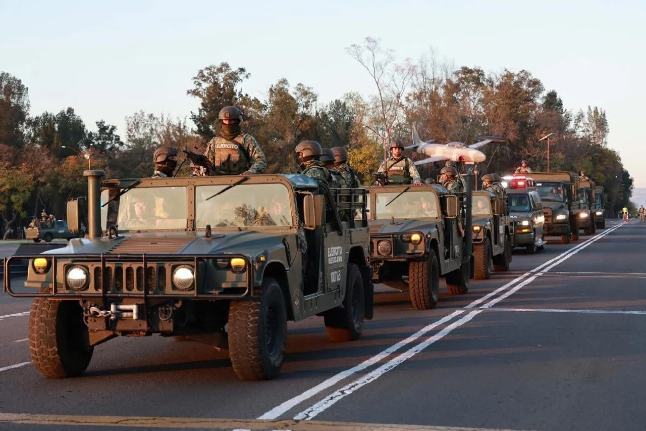 Por medio de un convoy de vehículos de transporte de personal y camionetas de 6 y media toneladas, desde el Campo Militar N1-A, ubicado en Naucalpan, Estado de México, fueron movilizados 1,500 elementos del Ejército y 500 de la Guardia Nacional para cumplir su misión de reforzar la seguridad en seis estados del país ubicados en la frontera norte con EUA, principalmente evitando el tráfico de fentanilo y el flujo de migrantes.