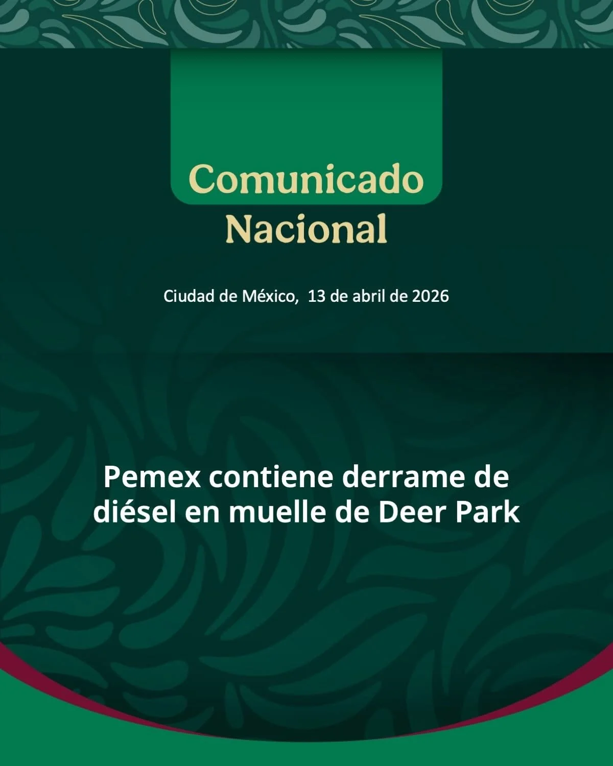 Pemex confirma derrame de diesel en la Refinería Deer Park; señalan a dos embarcaciones privadas como responsables
