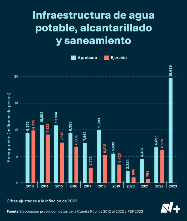 Para este 2023, el presupuesto de la Conagua será de 68.4 mil millones de pesos, que es apenas el mismo monto que se gastó la comisión hace una década, cuando había 13 millones menos de habitantes en el país y las sequías eran menores.