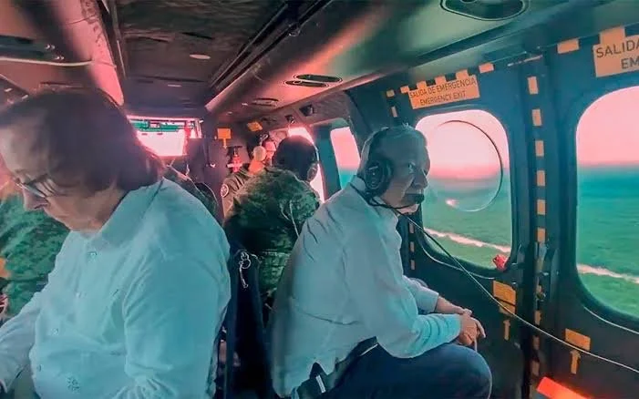 AMLO sobrevuela tramo Mérida-Campeche del Tren Maya para evaluar trabajos