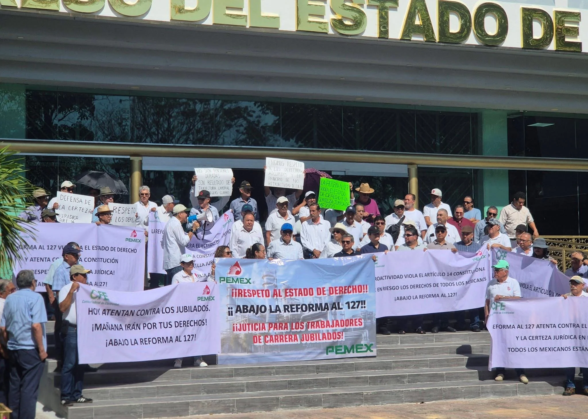 Las protestas se han registrado en diversas entidades del país, donde extrabajadores recorrieron calles y realizaron concentraciones para visibilizar su inconformidad ante los cambios al artículo 127 de la Constitución, los cuales limitan las jubilaciones a un máximo equivalente al 50% del salario presidencial.