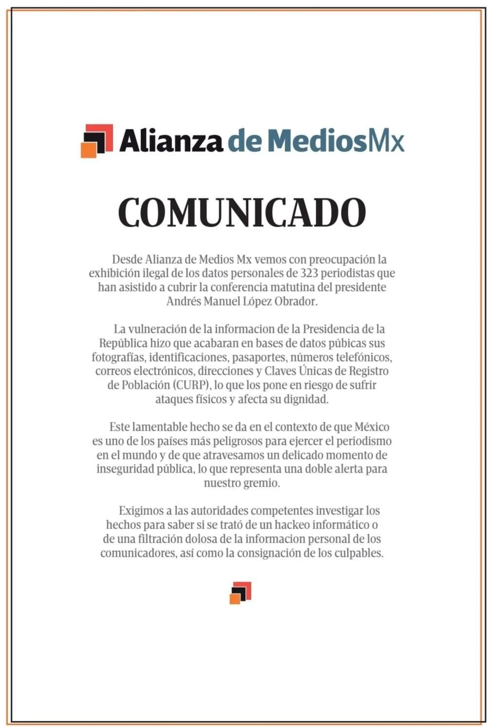Luego de que la semana pasada circulara en internet un listado con datos personales de alrededor de 300 periodistas que cubren las actividades matutinas del Presidente López Obrador, esta mañana durante su conferencia mañanera, el titular el Ejecutivo federal reconoció que los equipos de cómputo en Palacio Nacional fueron hackeados y con ello se expusieron datos personales de periodistas; sin embargo, descartó que haya algún riesgo derivado de la exposición de información.