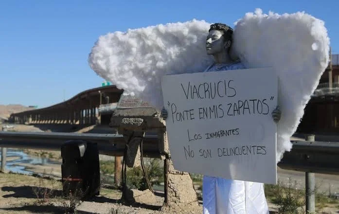 En Ciudad Juárez un centenar de migrantes escenificaron un Viacrucis en el que caminaron por los límites del río Bravo como homenaje a los 39 migrantes muertos por un incendio en la estación migratoria del Gobierno mexicano y para exigir justicia y un memorial a las autoridades.