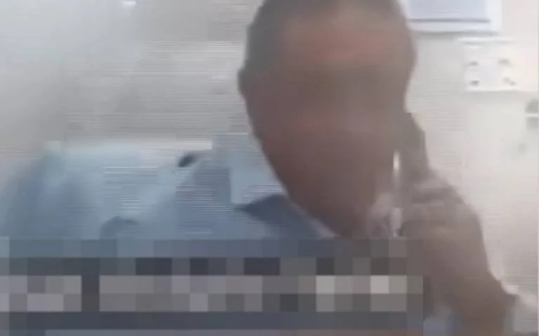 Seguido de lo cual, se puede observar en el video al exsubdirector administrativo tomar una llamada telefónica, la que presuntamente le dio aviso sobre su cámara encendida.