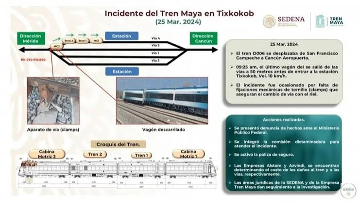 Sedena detalla motivos del descarrilamiento del Tren Maya en Tixkokob, Yucatán