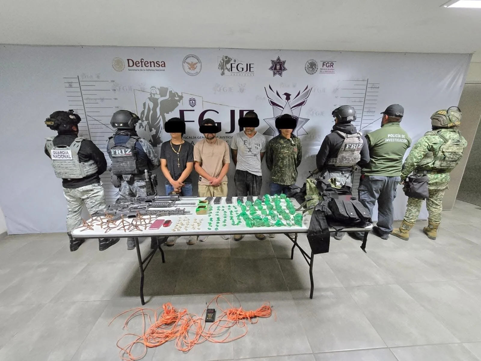 Tras repeler la agresión, las autoridades lograron la detención de cuatro personas identificadas como Alberto N., Claudio N., Juan Carrera N. y Flavio Alberto N., este último señalado como presunto jefe de plaza de un grupo criminal con presencia en la zona. Durante el operativo fueron también aseguradas armas largas, equipo táctico, presuntos narcóticos y explosivos.
