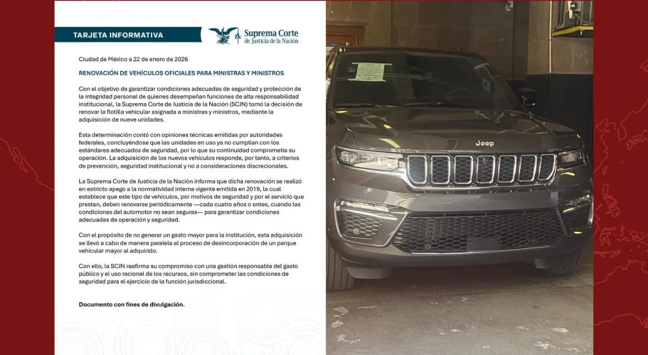 La Suprema Corte de Justicia de la Nación (SCJN) confirmó hoy, 26 de enero de 2026, su decisión de no utilizar las camionetas blindadas que recientemente adquirió el Poder Judicial de la Federación para garantizar la seguridad de los integrantes del máximo tribunal del país.