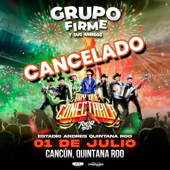 Fue apenas esta semana cuando se dio a conocer la cancelación del concierto de Grupo Firme, que se realizaría el 1 de julio en el estadio Andrés Quintana Roo. Por otro lado, el evento en el que se presentaría El Komander, el 19 de mayo en la plaza de toros, hizo un cambio y ahora solamente estará Grupo Altiro, de Armando Ramos, quien era vocalista de Calibre 50.