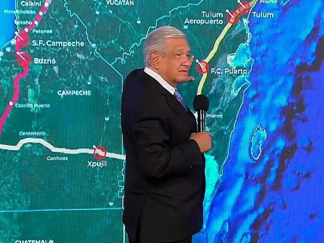 "Evaluamos la construcción del Aeropuerto Internacional Felipe Carrillo Puerto. Lleva 44 por ciento de avance; ya está prácticamente terminada la pista de 3 mil 700 metros y hay 4 mil 800 trabajadores de la construcción dirigidos por los ingenieros militares responsables de la obra", dijo el mandatario.