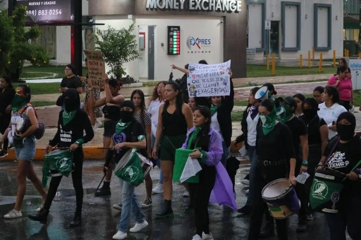 La tarde del jueves, integrantes de diferentes colectivos feministas se sumaron a una movilización con motivo del Día de Acción Global por un Aborto Legal, Seguro y Gratuito, que se conmemora cada 28 de septiembre, por lo que marcharon desde Malecón Tajamar hasta la plaza de la Reforma del ayuntamiento Benito Juárez.