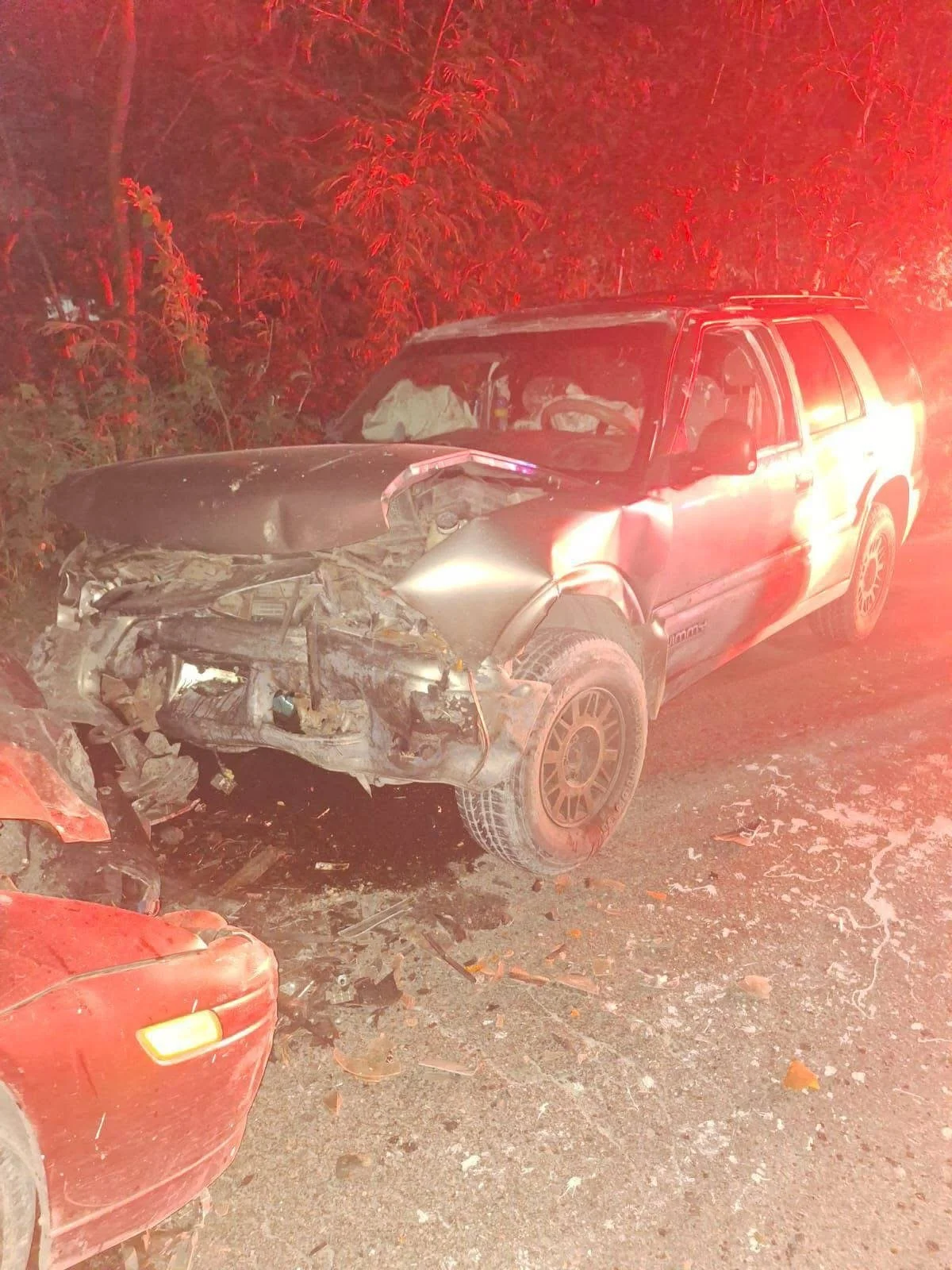 El hecho se registró a las 01:34 horas de este 29 de enero, cuando el conductor de un vehículo Ford Focus, color rojo, invadió el carril contrario mientras circulaba de norte a sur, colisionando de frente con un GMC Jimmy, color gris, que transitaba en dirección sur-norte. El impacto provocó graves lesiones a los conductores de ambos vehículos.