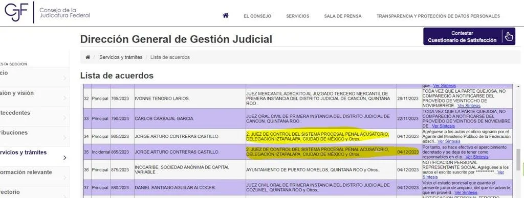 En el listado de acuerdos, un juez de Control del Sistema Procesal Penal Acusatorio perteneciente a la Delegación Iztapalapa de la Ciudad de México, emitió la resolución 865/2023 en contra de Jorge Arturo Contreras Castillo, ayer lunes 4 de diciembre, por su presunta responsabilidad en delitos del fuero federal, como es la malversación de recursos federales y desempeño irregular de la función pública entre otros.