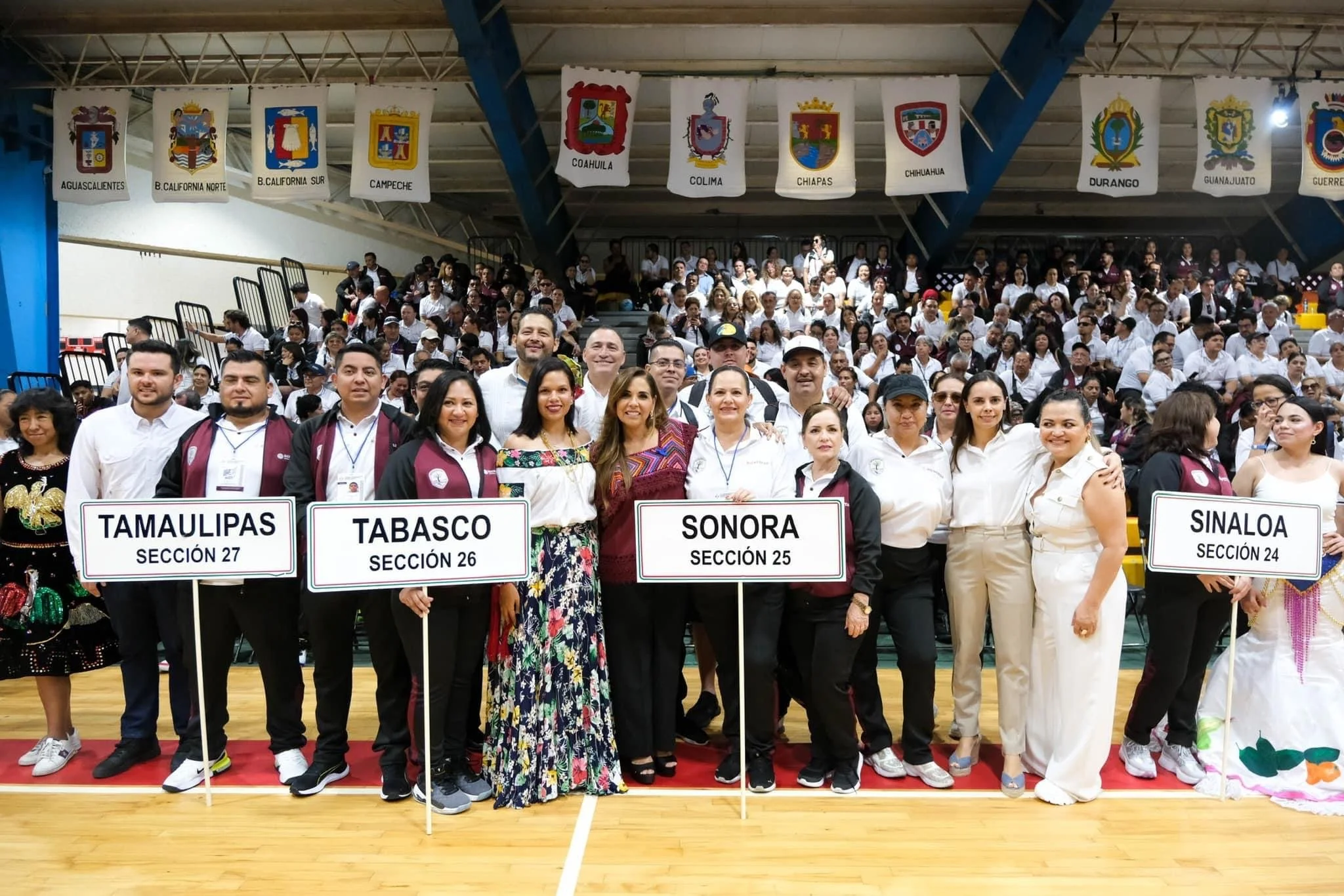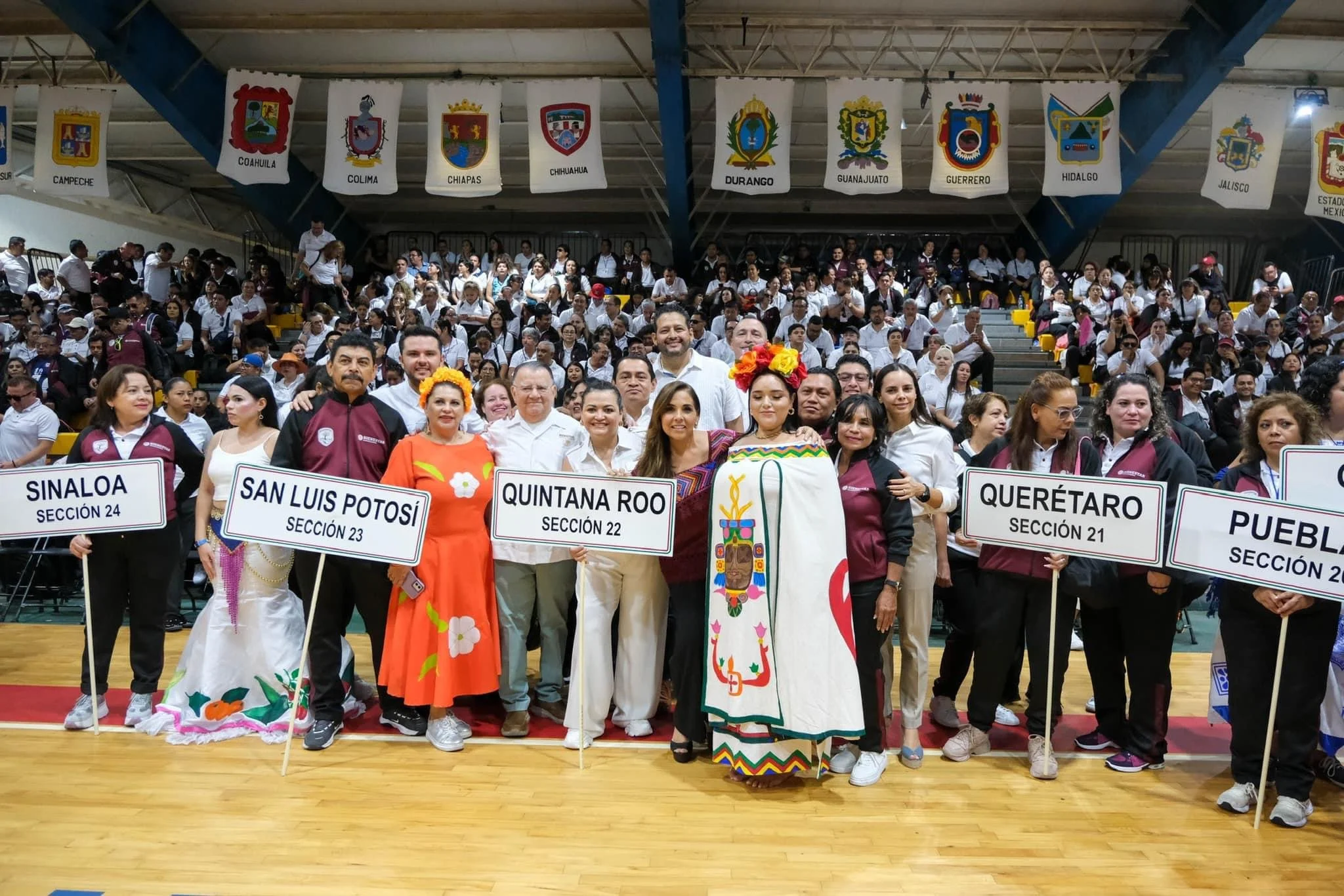 La gobernadora Mara Lezama Espinosa encabezó la ceremonia de inauguración de la 21a edición de los Juegos Nacionales Deportivos, Culturales y Recreativos de los Trabajadores de la Secretaría de Bienestar que se celebran en la unidad deportiva “Kuchil Baxal” de Cancún.