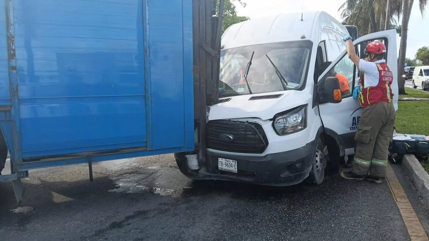 Durante la mañana de este martes, se registró un aparatoso accidente en el que estuvieron involucrados tres vehículos, un camión de refrescos, un transporte de personal y una van, a la altura del kilómetro 10.5 del Boulevard Kukulkán, frente al hotel Park Royal, dejando el saldo de varias personas lesionadas.