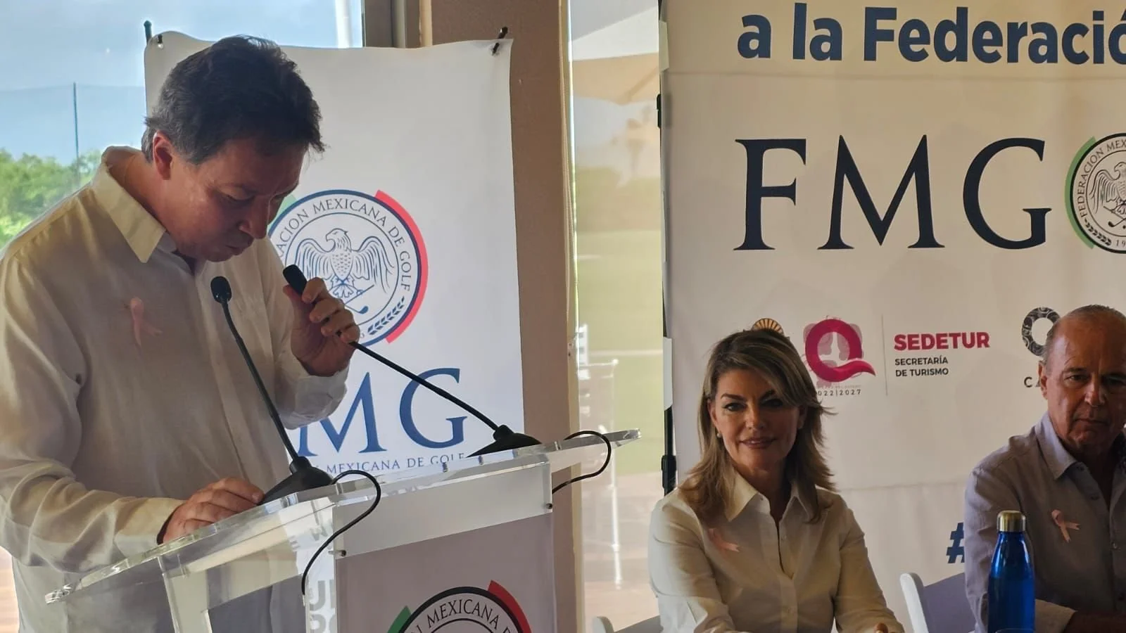 Liz Melo Morales, presidenta de la Asociación de Campos de Golf del Caribe Mexicano, durante una conferencia de prensa, anunció la afiliación de 13 campos del estado a la máxima autoridad para la práctica de esta disciplina, hecho que significa una importante derrama económica para el estado, además de cambiar la conducta y la percepción del destino.