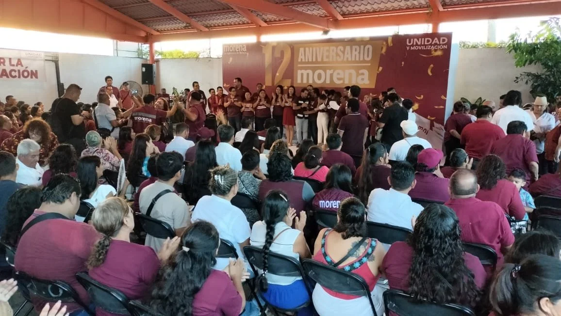 Con un evento que incluyó mariachis y baile, dirigentes estatales y militantes de Morena celebraron esta tarde el décimo segundo aniversario de la fundación como partido político del Movimiento Regeneración Nacional.