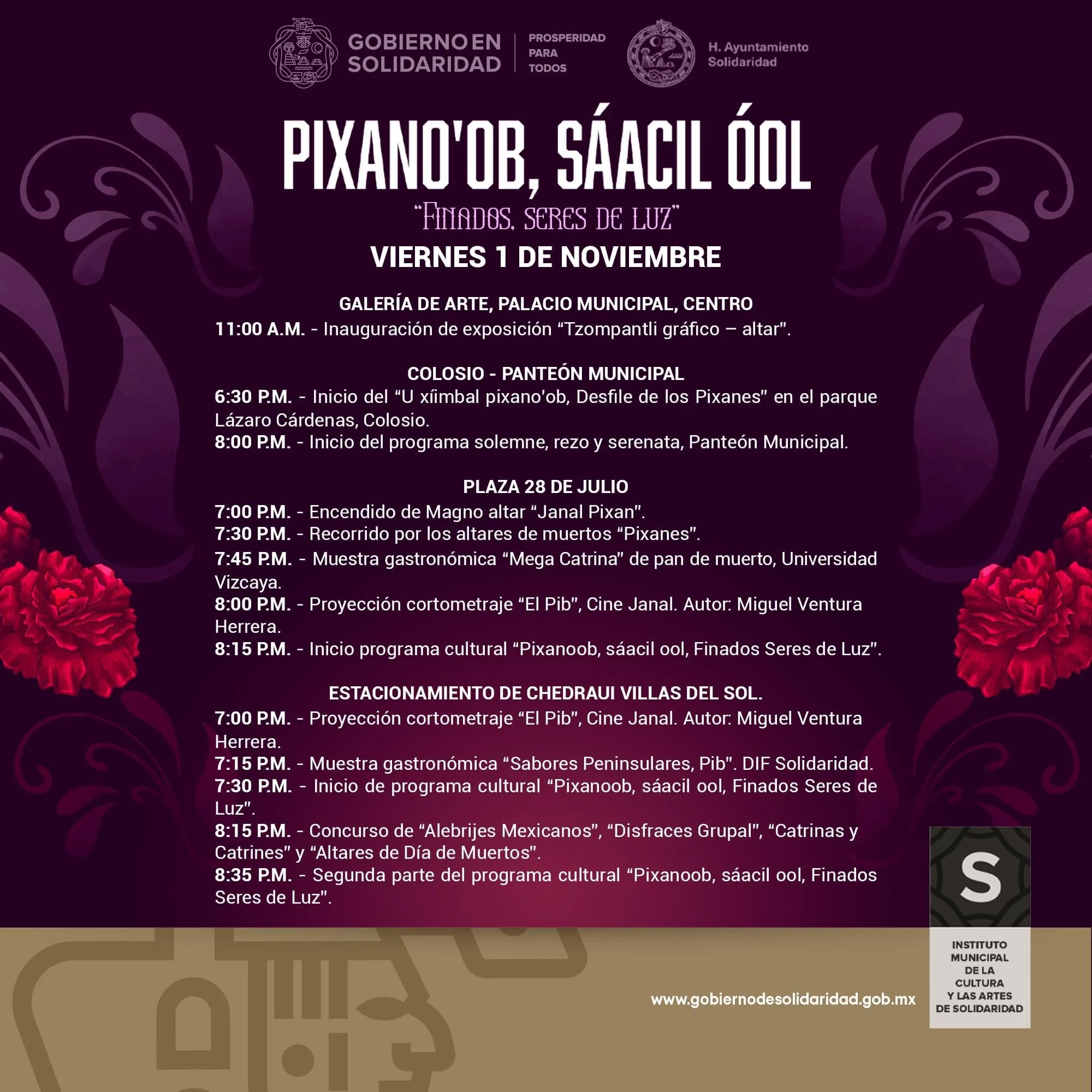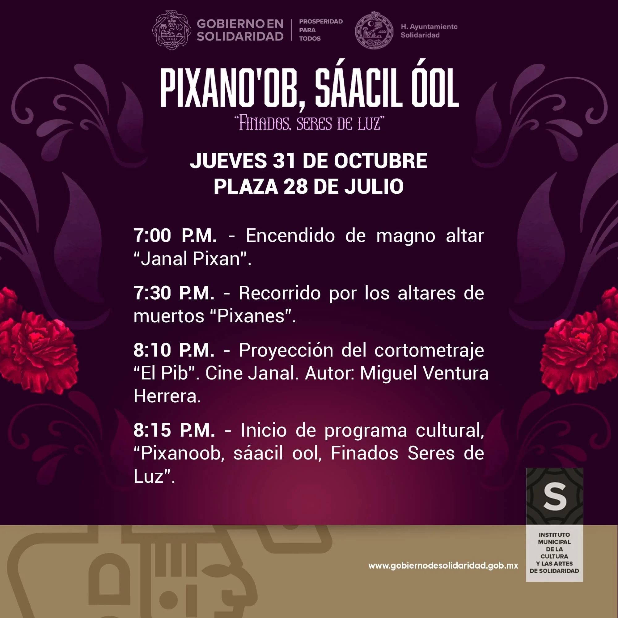 El evento, titulado "Pixano'ob, Saacil Óol" (Los muertos, los que se van), contará con diversas actividades culturales, como presentaciones de danza tradicional, exposiciones de arte y talleres de elaboración de ofrendas. Además, se realizarán ceremonias rituales en las que la comunidad rendirá homenaje a sus seres queridos que han partido.