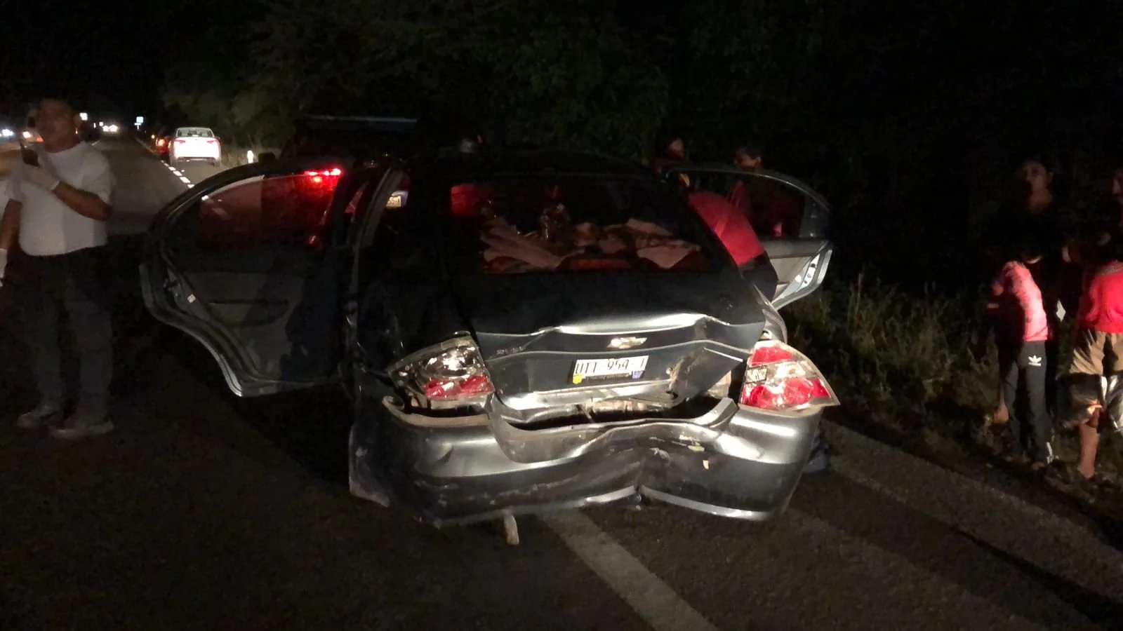 El conductor de un Nissan Tsuru, quien presuntamente iba en estado de ebriedad, no vio a este coche, un Aveo, estacionado directamente en el carril de baja, cerca del Inifap, por lo que lo golpeó por detrás.