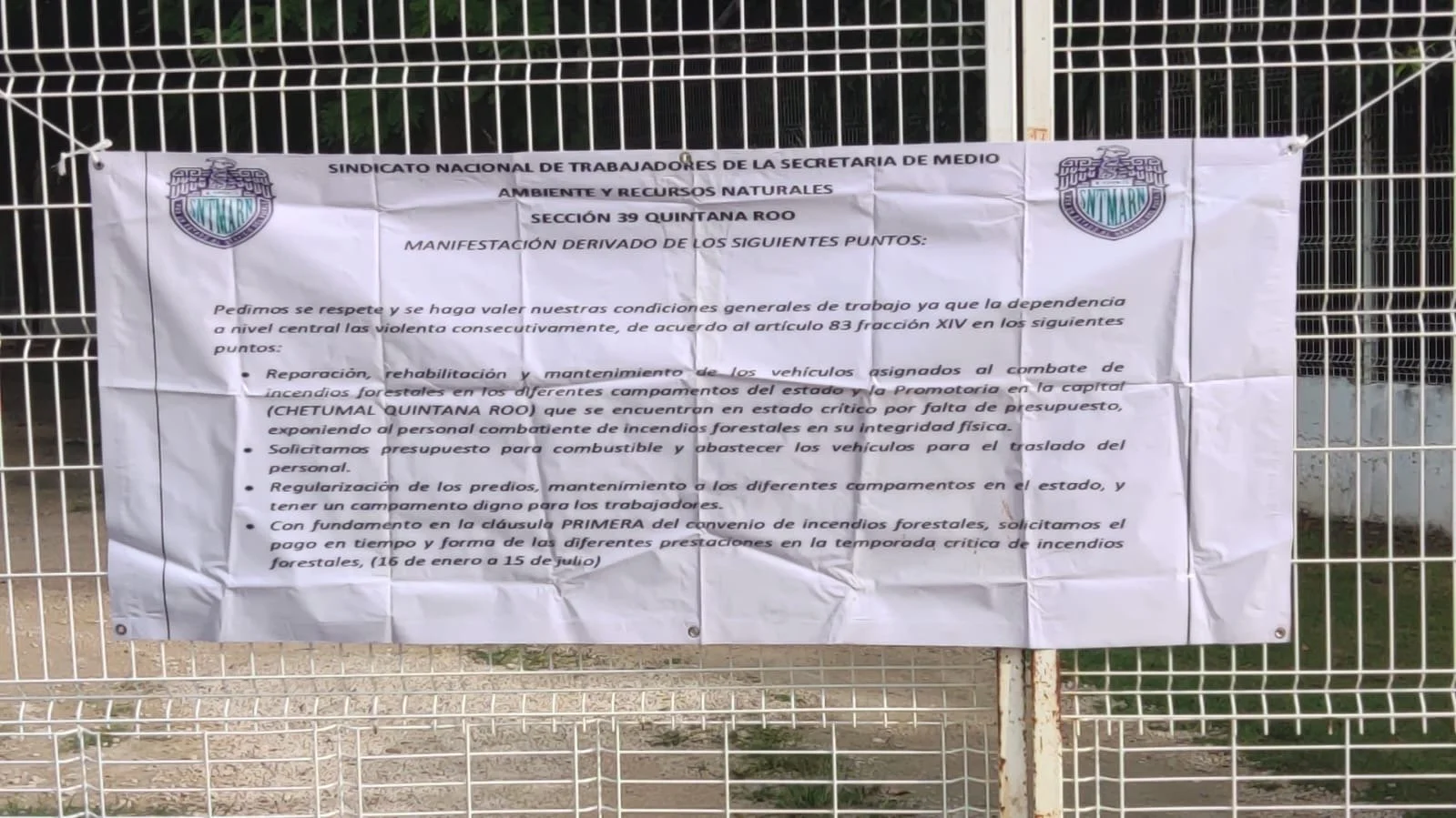 Los manifestantes, quienes colocaron una manta con exigencias en la sede de esta dependencia en Chetumal, acusan a la Conafor de presuntos actos de corrupción, por la adquisición de la prendas de trabajo a precios “inflados”.