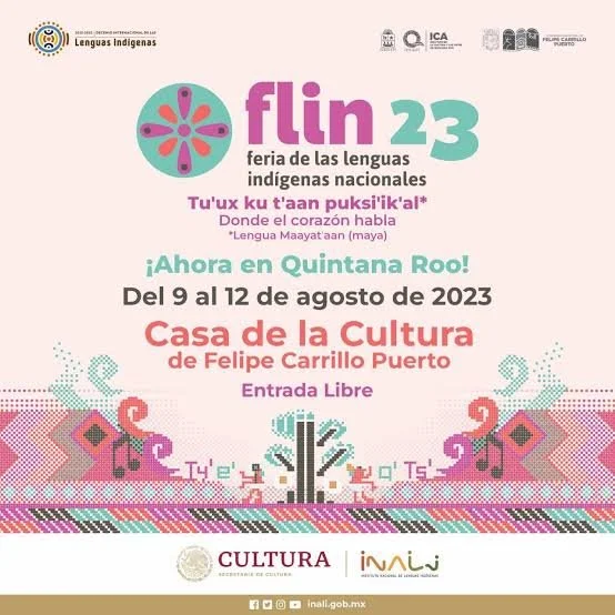 Por primera vez en la historia, Quintana Roo será sede de la Feria de las Lenguas Indígenas Nacionales, como parte de las políticas públicas del gobierno del estado, la cual estará a cargo del Instituto de la Cultura y las Artes (ICA) y el Instituto Nacional de Lenguas Indígenas (Inali), del 9 al 12 de agosto en la Casa de la Cultura de Felipe Carrillo Puerto.
