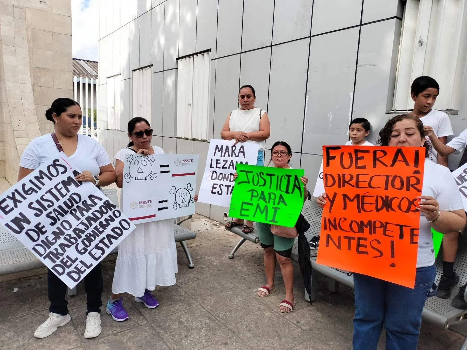 Padres, familiares y amigos de Emiliano protestaron frente a las instalaciones del ISSSTE en Cancún para exigir justicia, luego de que el menor de dos años de edad, falleciera presuntamente a causa de negligencia médica en el Instituto de Seguridad y Servicios Sociales de los Trabajadores del Estado (ISSSTE) Cancún.