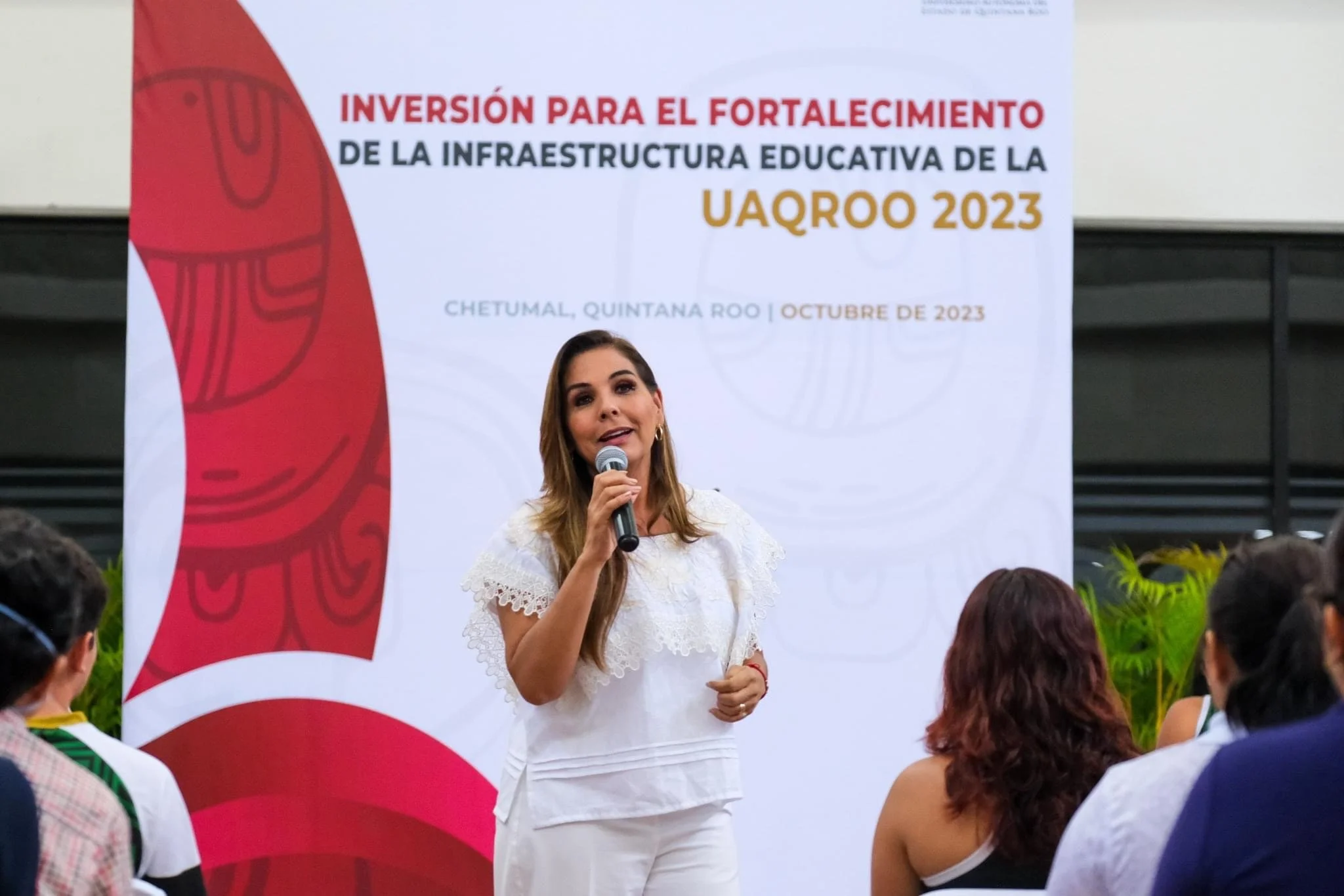 La gobernadora Mara Lezama Espinosa anunció una inversión histórica de más de 36 millones de pesos que se aplicará este año en las instalaciones de la Universidad Autónoma de Quintana Roo (UQROO) y sus campus de Othón P. Blanco, Playa del Carmen, Cozumel y Benito Juárez en beneficio de más de 7 mil estudiantes.