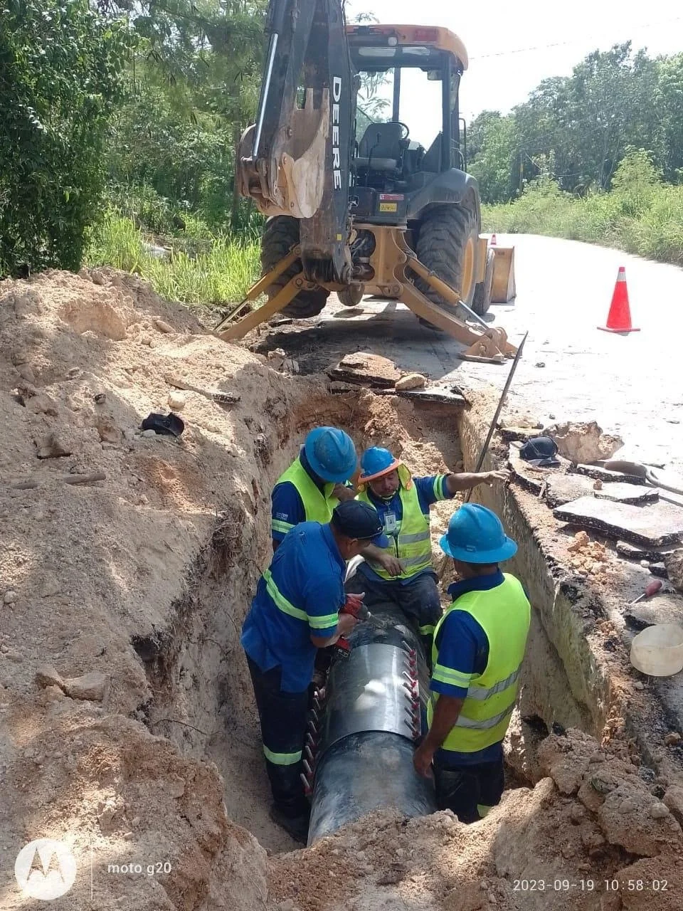 La empresa Aguakan emitió un comunicado en el que informó que mientras se encontraba en el proceso final de cierre de los trabajos programados de interconexión y puesta en operación de la línea de hierro dúctil de 32 pulgadas entre los cárcamos 9, 10 y Planta Aeropuerto, maquinaria pesada de la empresa ICA perforó dicha línea en un punto cercano, derivando en la fuga.