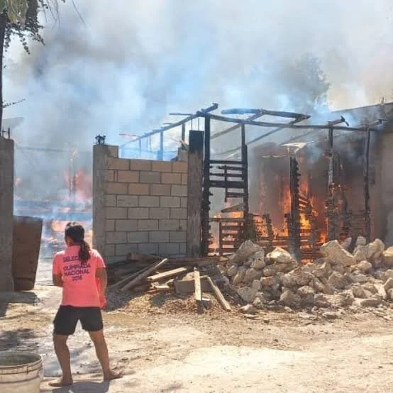 Incendios arrasan con viviendas en invasiones Nassim y 2 de Octubre, Tulum