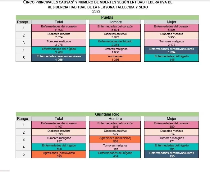 Quintana Roo presentó la menor tasa de mortalidad en todo el país en 2022, en lo que concierne a enfermedades, pero figura por arriba de la media nacional al tratarse de causas externas, reveló hoy el Instituto Nacional de Estadística y Geografía (Inegi), a través del reporte “Estadísticas de Defunciones Registradas (EDR) 2022”.