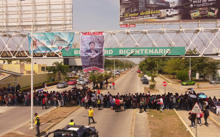Este jueves un grupo de estudiantes de la Universidad Juárez Autónoma de Tabasco (UJAT) bloquearon el paso al blvd. Bicentenario, para solicitar la renuncia de la directora Felipa Sánchez Pérez, a quien acusan de abuso de poder, encubrimiento y malos tratos hacia la comunidad estudiantil.