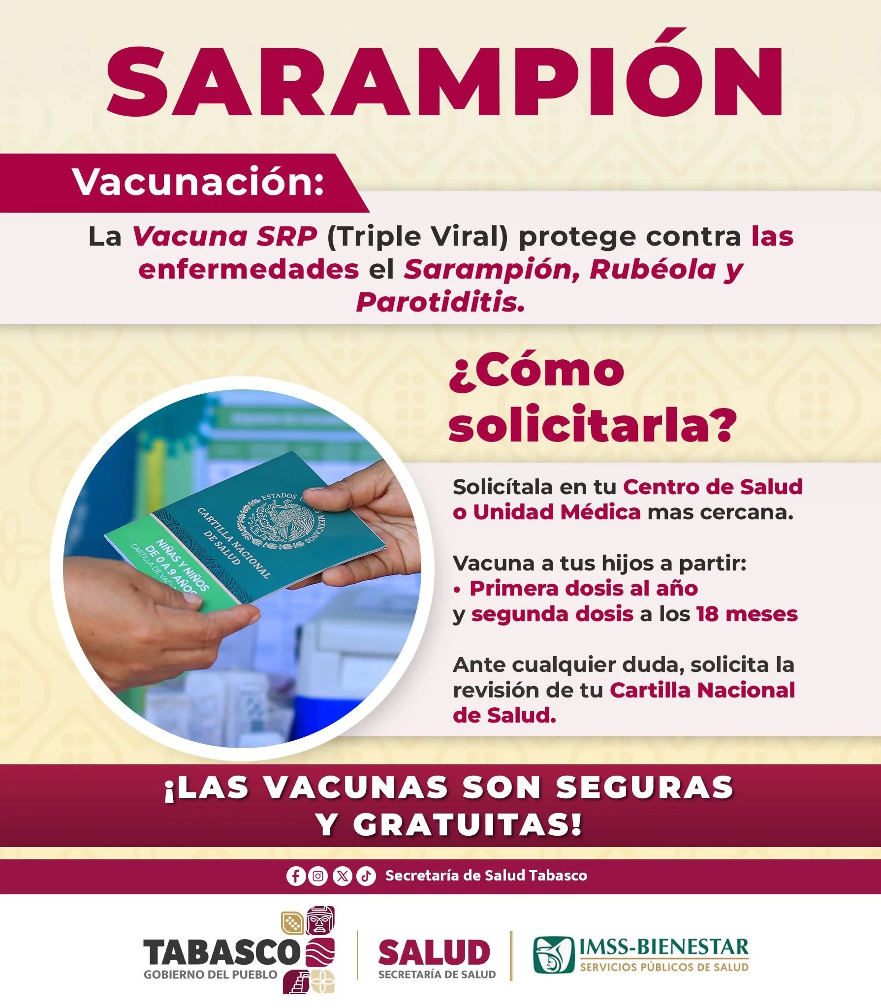 Secretaría de Salud confirma nuevos casos de Sarampión en los municipios de Centro y Tenosique