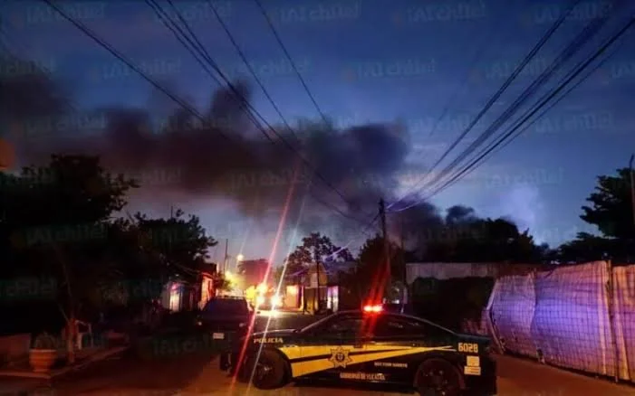 Fuerte incendio en taller de automóviles cerca de Plaza Fiesta, Mérida