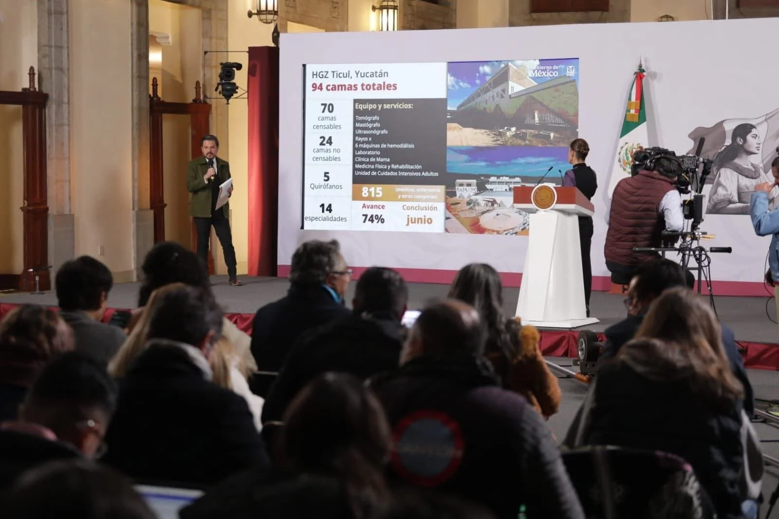 Al presentar los avances de los hospitales del IMSS que estarán listos este 2026, el funcionario federal expuso que el Hospital de Ticul lleva un avance de 74 por ciento y se estima que ingenieros militares culminen la obra en junio.