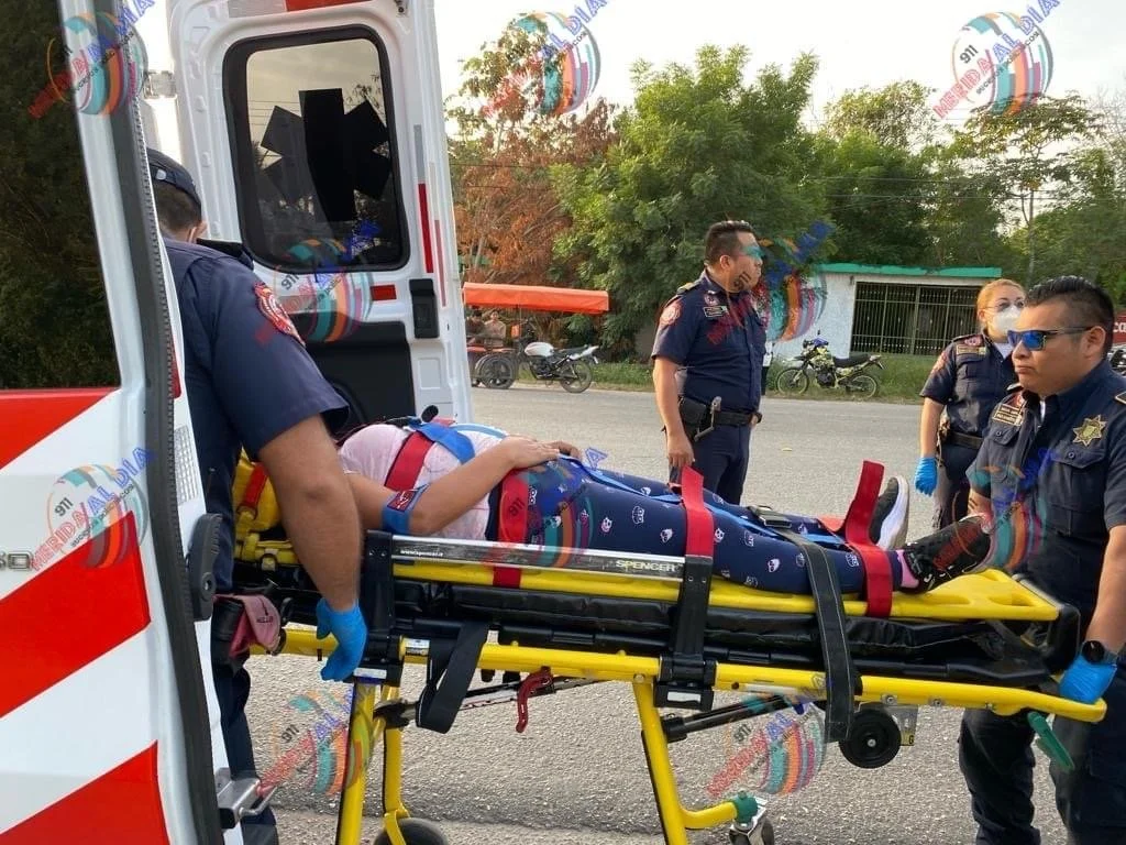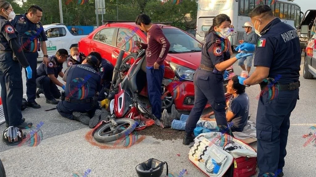 Un motociclista y la mujer que le acompañaba, fueron trasladados a un hospital luego de que se dieron contra un auto que se les metió en el camino sobre la carretera Mérida-Tixkokob.