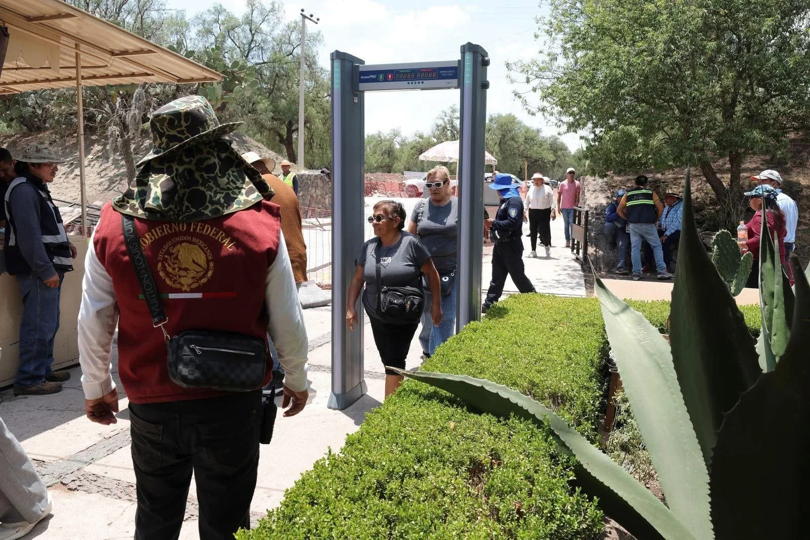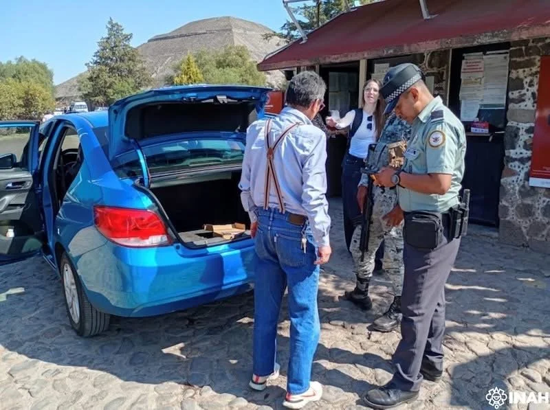 “Nosotros como zona arqueológica llevamos muchos años revisando mochilas y estamos coordinados con la Guardia Nacional cuando se detecta algo que no es conveniente, como un arma blanca, explosivos o pistolas, porque a veces vienen militares de visita y las traen, entonces se les pide que lo dejen en la entrada. Con esta nueva implementación nos dieron dos arcos de metal y también unos garrets o paletas revisoras de metales, que esas también ya llevamos tiempo ocupándolas en los operativos grandes, como equinoccios o eventos especiales y afortunadamente nunca ha habido un problema”.