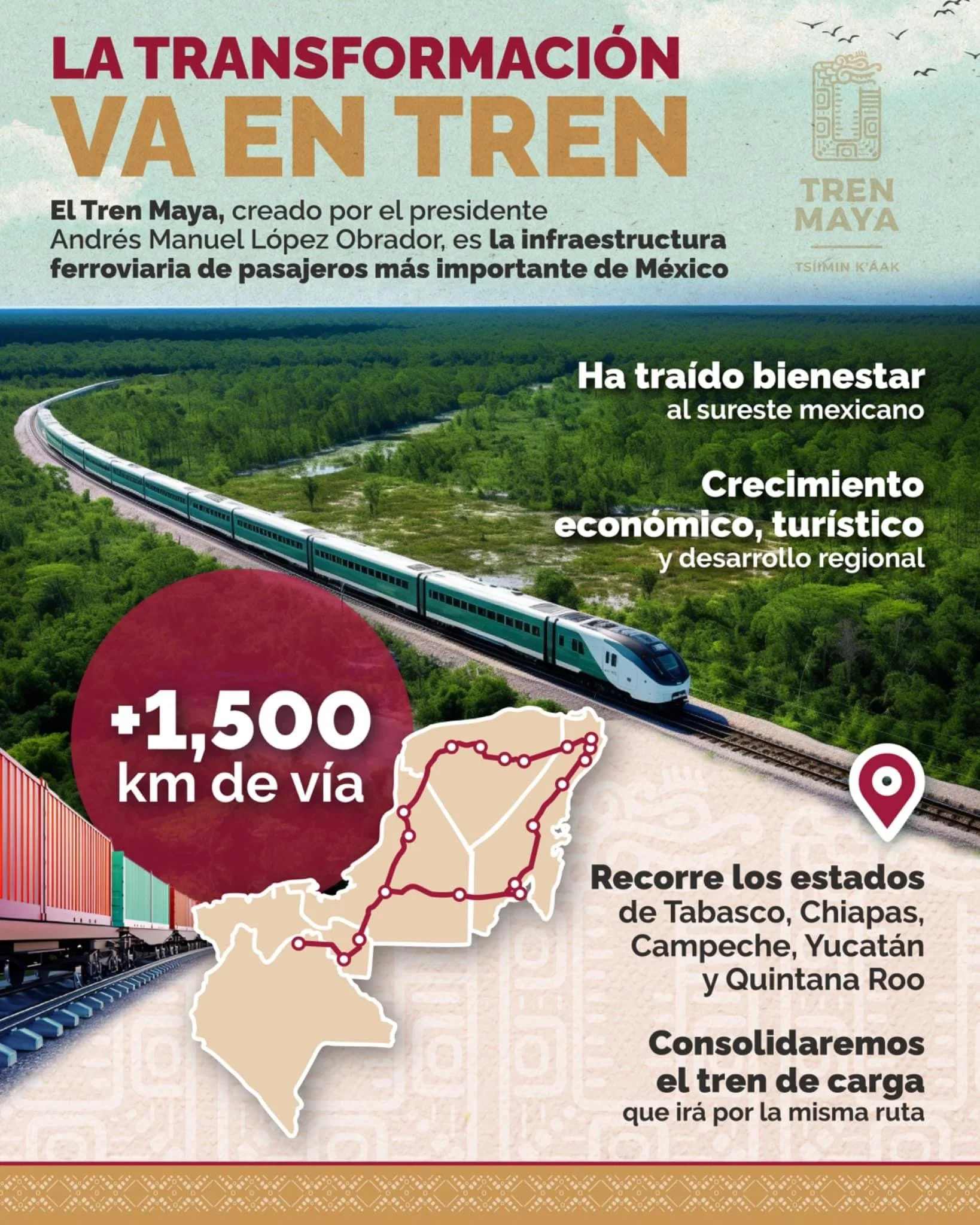 “Ayer (sábado) estuvimos en reuniones de evaluación del Tren Maya y viajamos de la estación Teya en Kanasín, Yucatán, a la estación Cancún Aeropuerto, en Quintana Roo. Esta obra es una hazaña histórica. No solo son los más de mil 500 kilómetros construidos en cinco años y la belleza del viaje”, se lee en sus redes sociales.